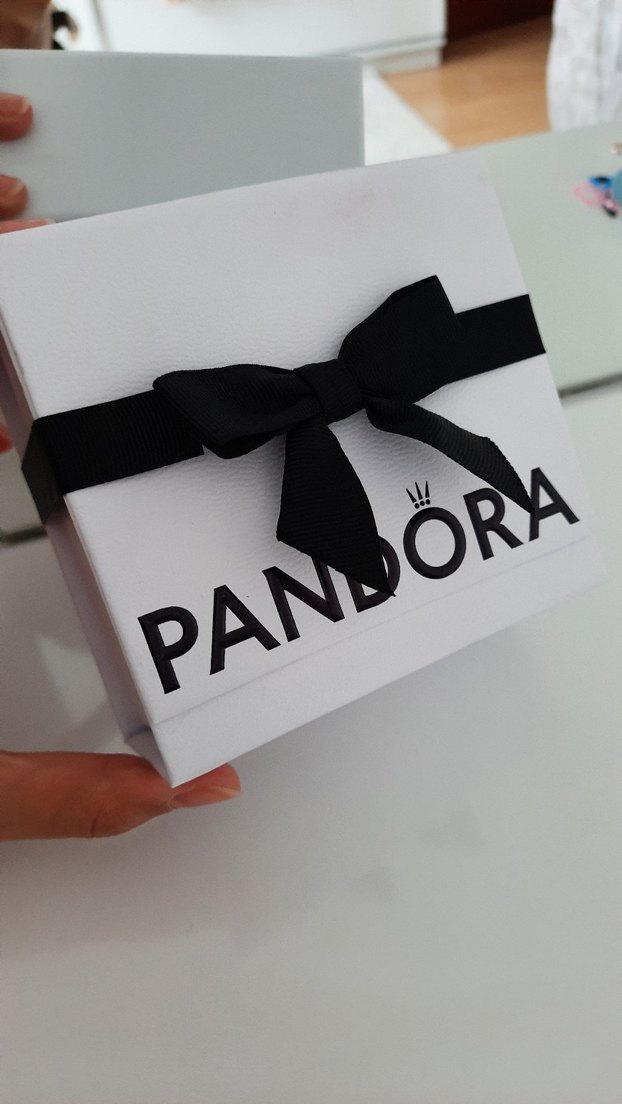 Siyah kurdeleli beyaz Pandora makyaj organizer kutusu, kozmetiklerin düzenli saklanması için uygundur.