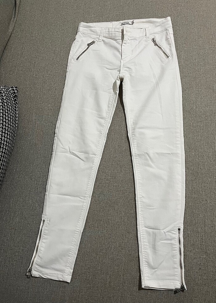 Stradivarius marka beyaz kot pantolon. Arka bel kısmındaki etikette deforme vardır. Onun dılında pantolonda deforme yoktur