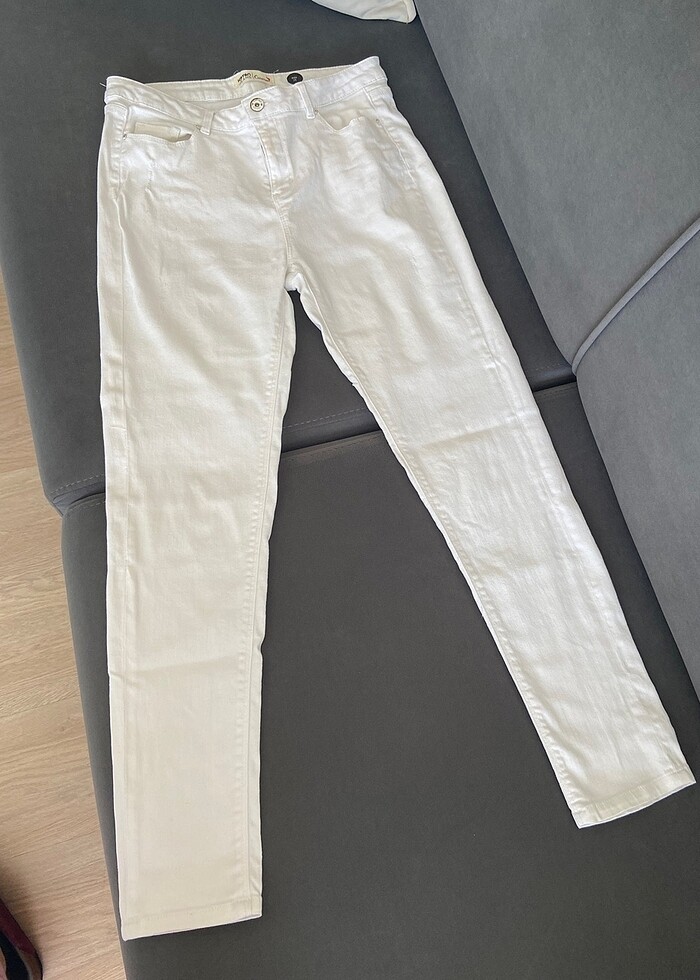 Fazlalık olduğundan satıyorum. Fermuar kısmında sarı leke mevcut ekledim görsellere. Orta bel diyebilirim