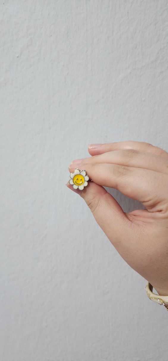 Gülen papatyalı çocuk yüzüğüdür. Yetişkinler de kullanabilir(serçe parmağınıza takabilirsiniz ya da parmaklarınız ince ise diğerlerine de takabilirsiniz.) Kendimi çocuk gibi hissetmek için almıştım anlık Çelik mi bilmiyorum.