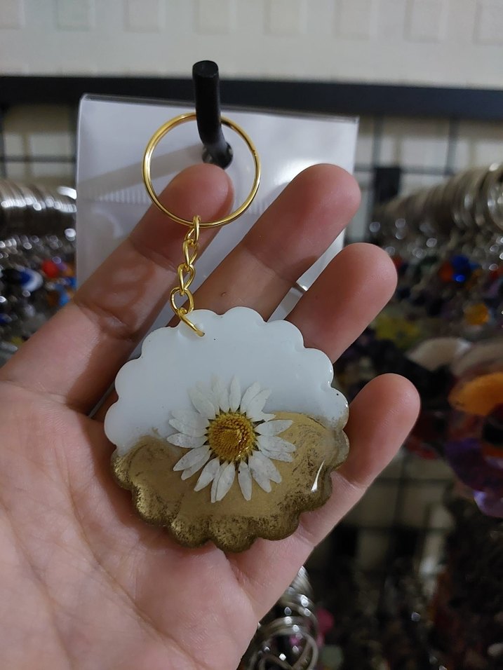 Beyaz Papatya Detaylı Zincirli Anahtarlık #söznişanhediyelik