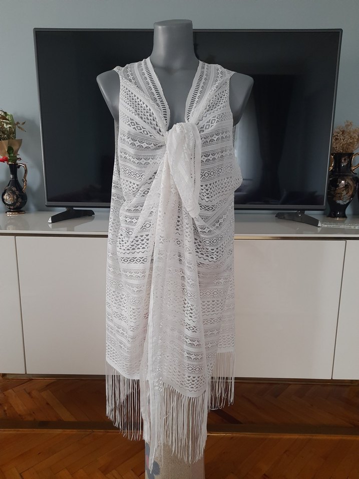 Beyaz örgü kumaştan yapılmış,her bedene uyumlu pareo,marka temsili.