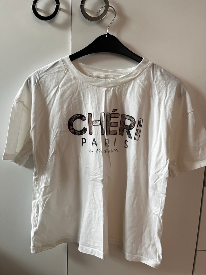 Pamuklu, kısa kollu, yuvarlak yakalı beyaz tişört. Önünde parlak "CHÉRI PARIS" baskısı bulunan bol kesim, günlük kullanıma uygun. İki tshirtün fiyatıdır.