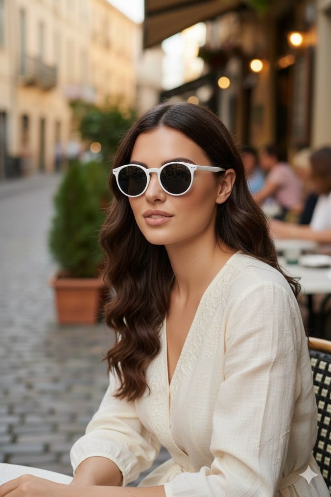 Beyaz Parisian Tarzı Kadın Güneş Gözlüğü