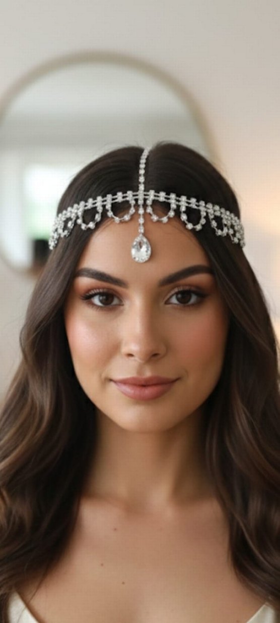 Beyaz cam taşlarla süslenmiş, parlak detaylara sahip bohem tarzda saç aksesuarı. Retro ve hippie görünüme uygundur. ✨