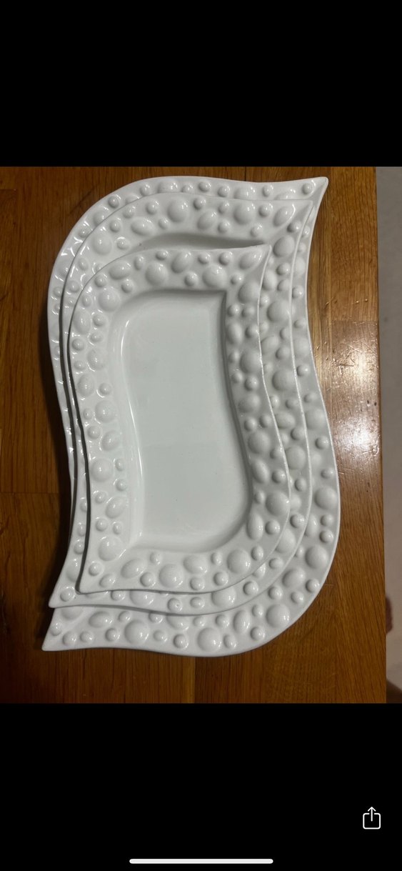 Dalgalı tasarıma ve dokulu yüzeye sahip beyaz parlak yiyecek kabı. ️