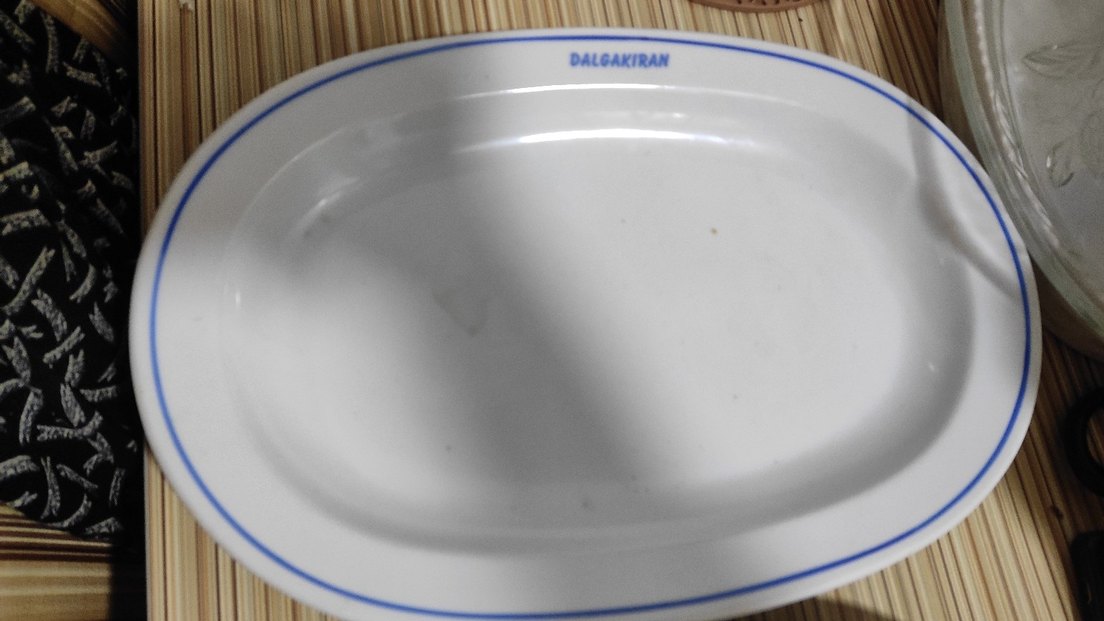 Mavi kenarli beyaz parlak Dalkıran yemek tabakları, yemek servisi için uygundur. ️iki adet servis tabağı