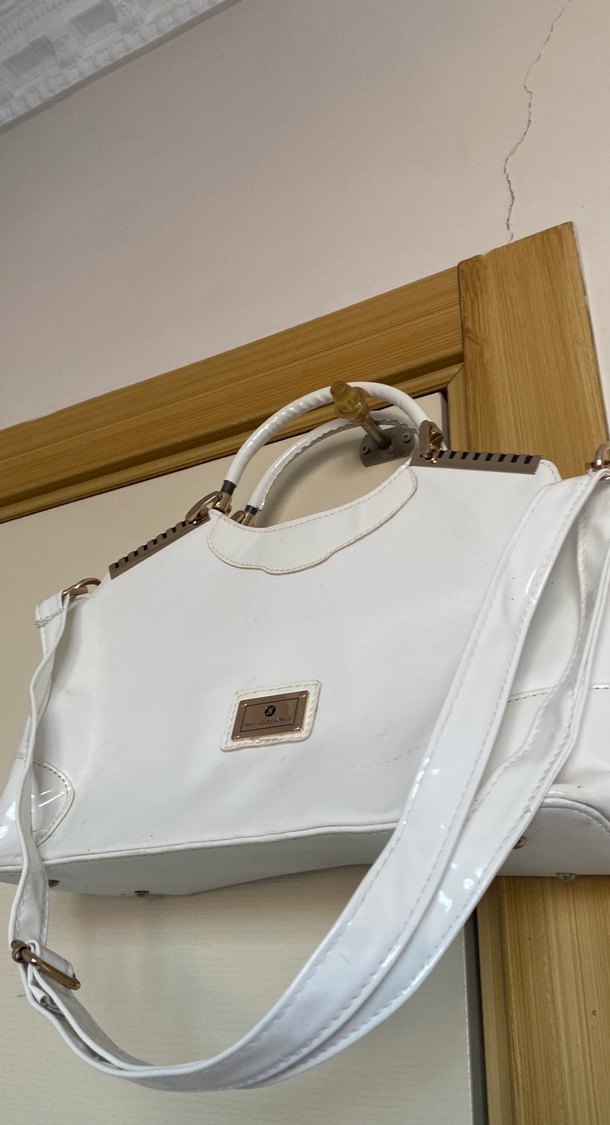 Beyaz parlak deri kadın çanta, fermuarlı kapama ve modern klasik Paris tarzı ile günlük kullanıma uygun. ✨