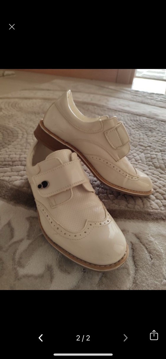 Beyaz Parlak Deri Tokalı Erkek Çocuk Ayakkabısı
