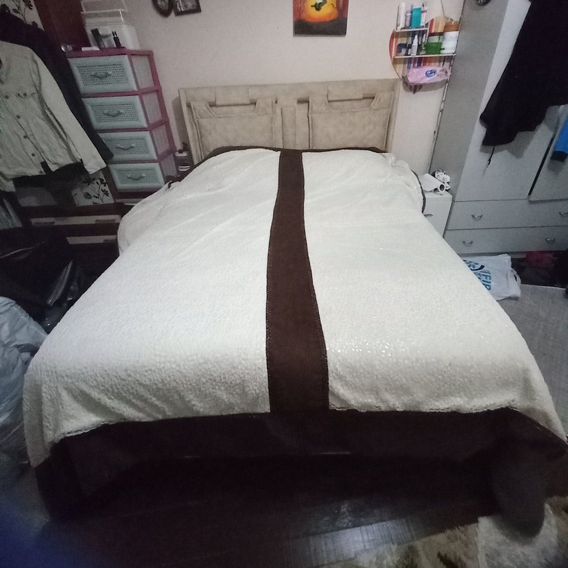 Düz tasarımlı, parlak beyaz renkte ve koyu renk orta şerit detaylı yatak örtüsü. Odaya sade ve temiz bir görünüm katar. ️eni 250 boyu 250 cm
