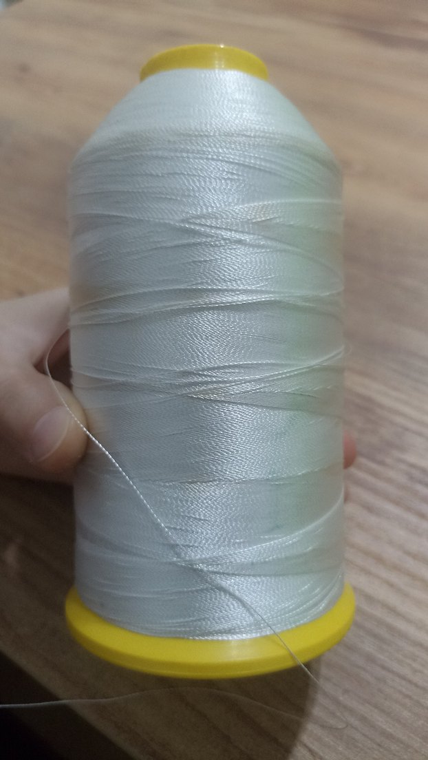Sarı makarada beyaz parlak el işi ipi, bohem tarz el sanatları için uygun. ✂️