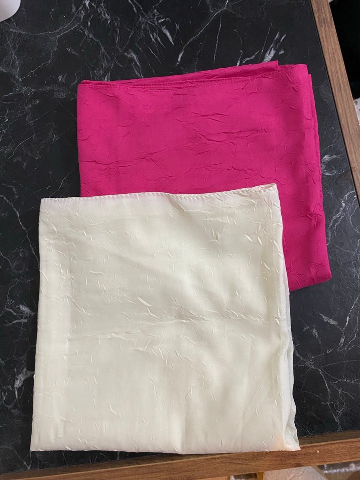 Kadınlar için drapeli, parlak beyaz sentetik kumaştan yapılmış sade ve geleneksel tarzda eşarp. ✨ adet fiyatıdır.