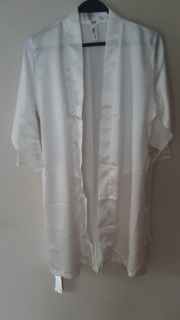 Beyaz parlak midi uzunlukta, kısa kollu, bol kesim kadın sabahlık. Minimalist bohem tarzını yansıtan desensiz ve şık bir model. ✨