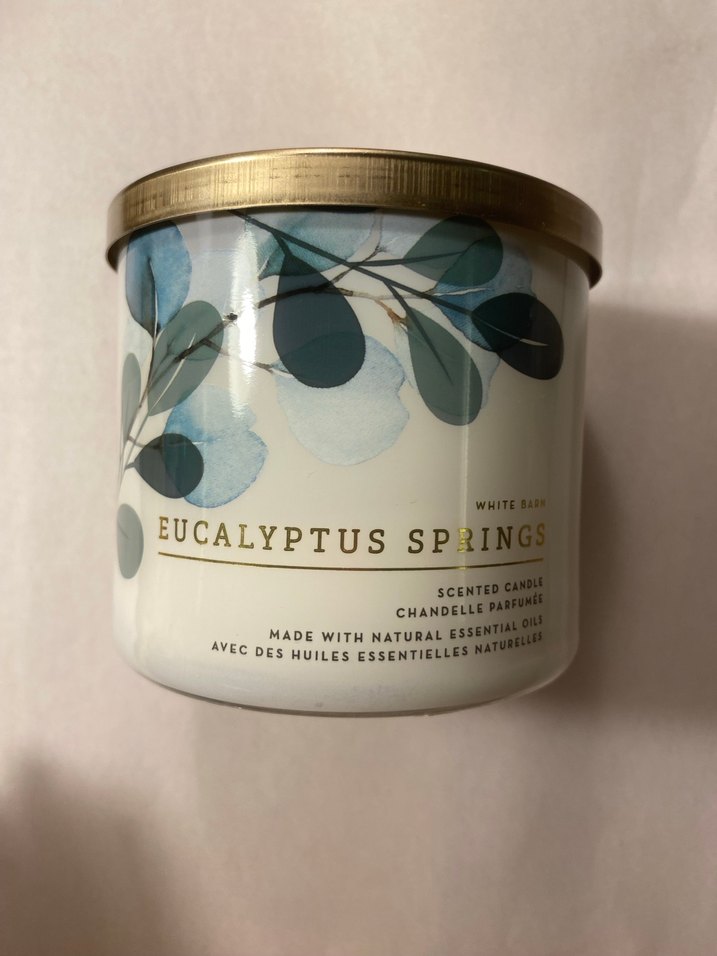 White Barn markalı, altın renkli kapağa sahip parlak beyaz mum. Temiz ve şık bir görünüm sunar. ️
