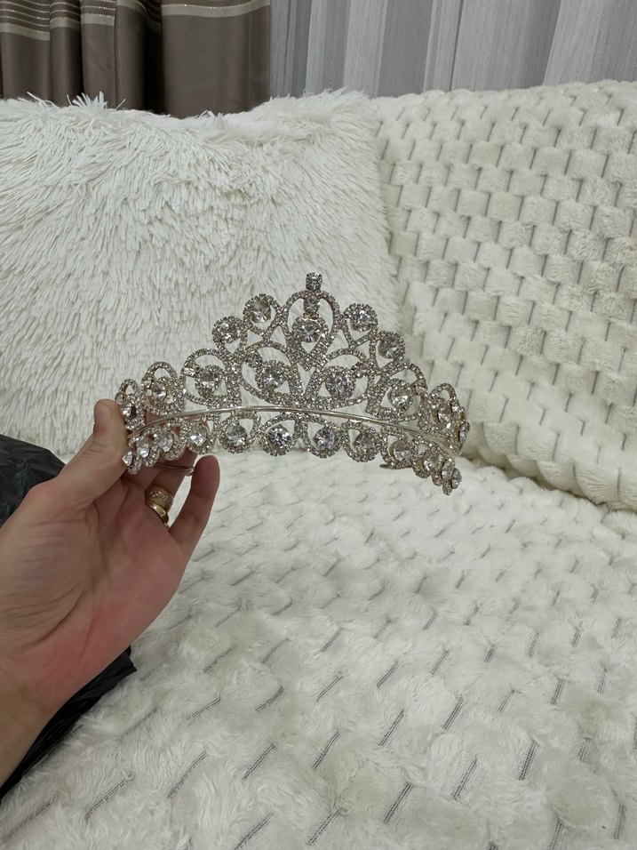 Beyaz Parlak Payetli Gelin Tacı