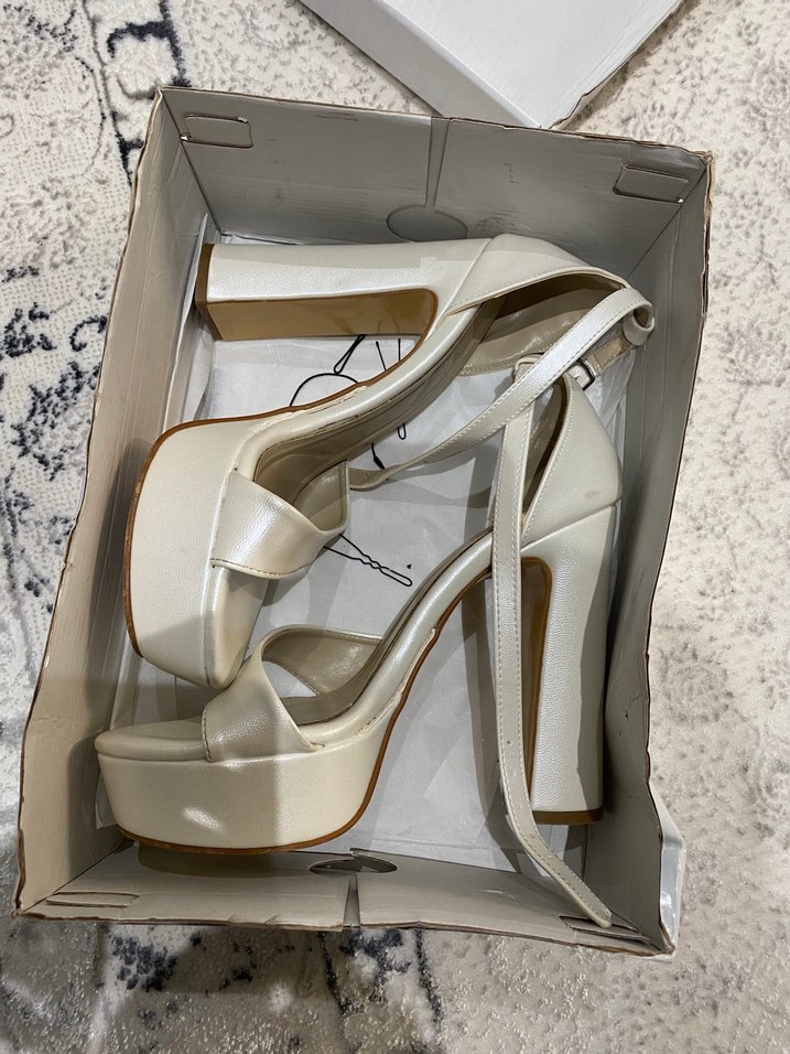 Ayaklarım taraklı olduğu için çift bantlıydı , tek bantlıya çevirdim. Kendim kestim ama görünmüyor. Gelinliğin altına giydim çok rahattı. 12 cm topuğu. Taraklı ayaklar için tercih edilmeli. Marka temsili