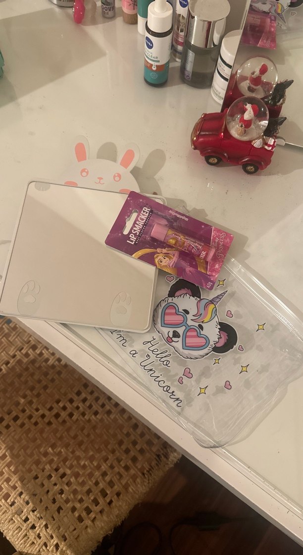 Ayna, makyaj veya kalem çantası, dudak kremi kız çocukları için hediye olarak almıştım vermedim hiç kullanılmadı gratisten alındı hepsi