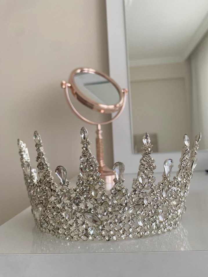 Beyaz renkli, parlak pul işlemeli ve bohem tarzda, zarif ve göz alıcı bir gelin tacı ve küpesi 1 kere düğünümde kullanıldı.