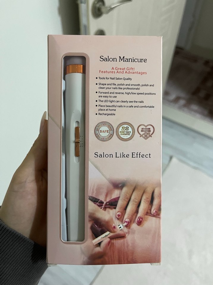 Parlak beyaz renkte, tırnak şekillendirme, parlatma ve temizleme özellikleri olan salon manikür kalemi. LED ışıklı ve şarj edilebilir. fiyatta yardımcı olurum hiç kullanılmamıştır
