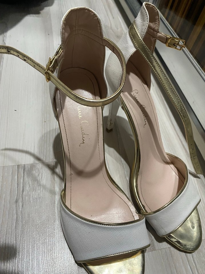 Beyaz parlak stiletto topuklu ayakkabı tokalı modern klasik tarzda, düğün için uygundur.