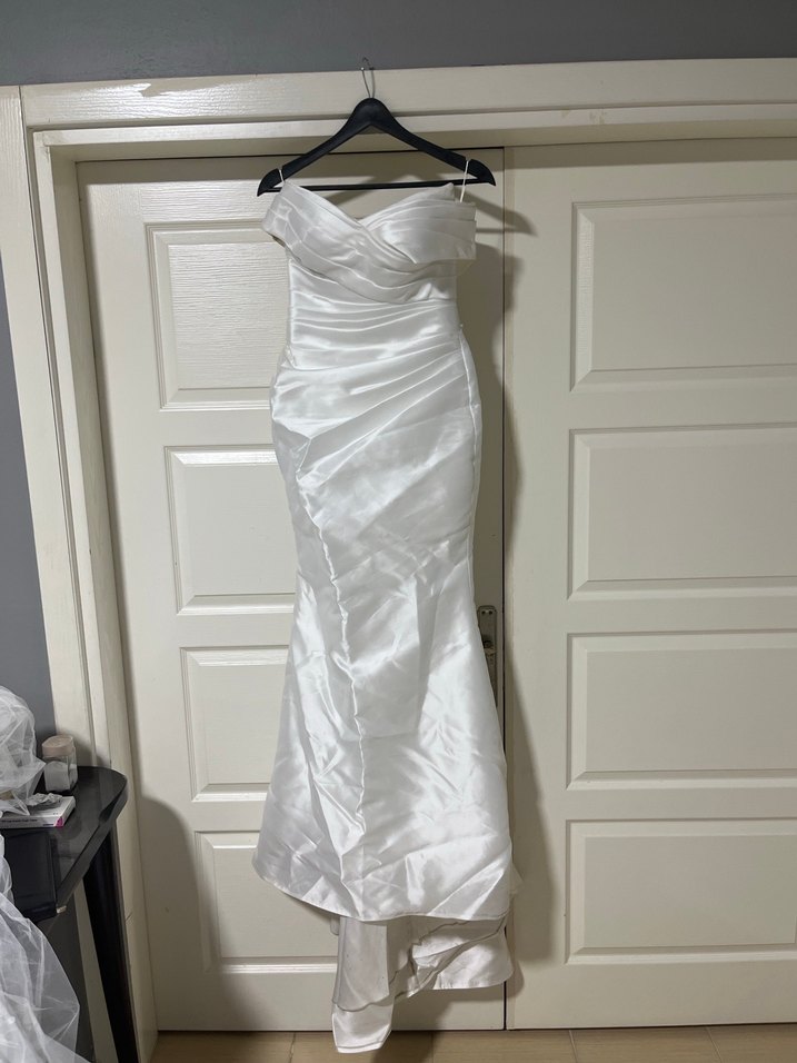 Uzun beyaz gelinlik, straplez yaka ve ince askılı kollara sahiptir. Vücuda oturan kesimi ve parlak dokusuyla klasik zarafeti modern minimalist tarzla buluşturur. Düğün için uygundur. Gelinlik bi modacıdan alıntıdır özel dikimdir 1.5 yıl önce 68 bin tl ye diktirdim arkasında çok uzun bir kuyruğu var ister takıp ister çıkarabiliyorsunuz gelinlik tafta kumaştan ve ağır bir gelinliktir duak ta içindedir kuru temizleme yapılmamıştır ve ufak bir iki adat tadilatı vardır onun dısnda bir sorunu yok çok şık bir gelinlik ben çok severek giydim maksat elimde durmasın o yüzden satıyorum PAZARLIK PAYI VARDIR ELŞMDEN GELDİĞİNCE YARDIMCI OLURUM