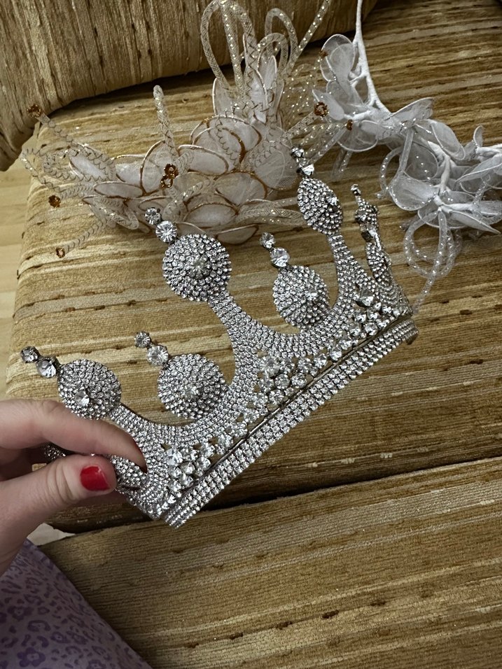 Beyaz Parlak Taşlı Gelin Tacı