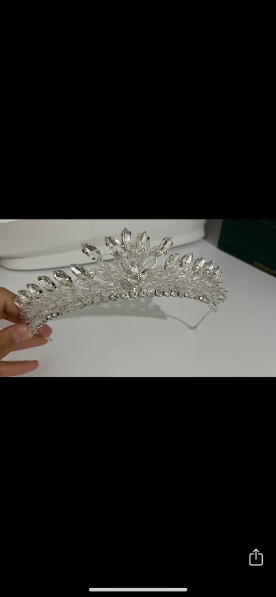 Beyaz parlak taşlarla süslenmiş gelin tacı, modern klasik tarzı ve zarif ışıltıyı bir araya getirir.