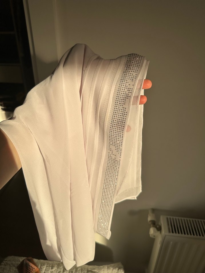 Beyaz Parlak taşlı Kadın Şal