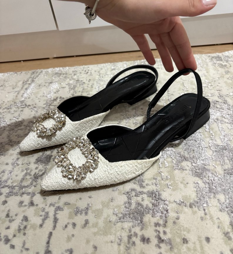 Beyaz Parlak Taşlı Stiletto babet nişantaşı shoes