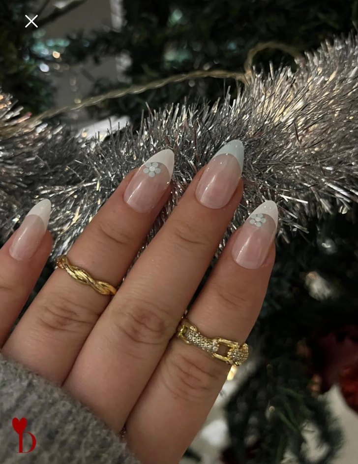 Şeffaf taban üzerine beyaz parlak çiçek desenleriyle tırnak süslemeleri, manikürünüze zarafet katıyor.