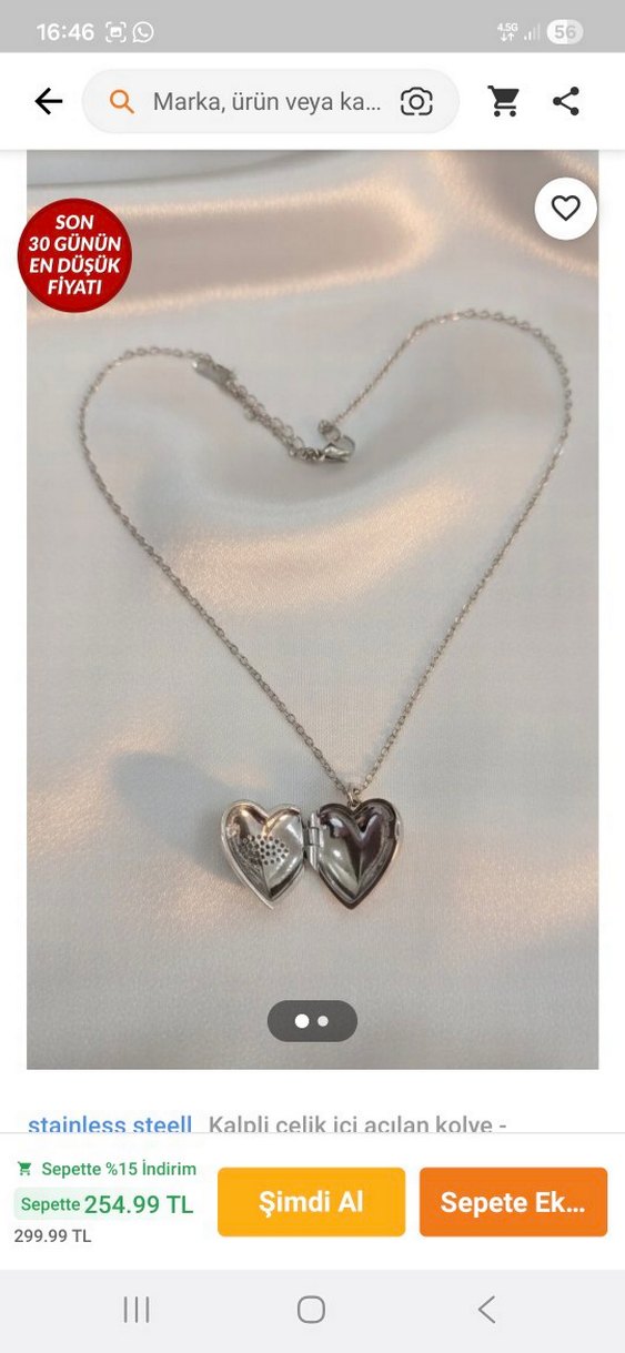 Beyaz Parlak Zincirli Midi Kalp Kolye içi açılan resimli