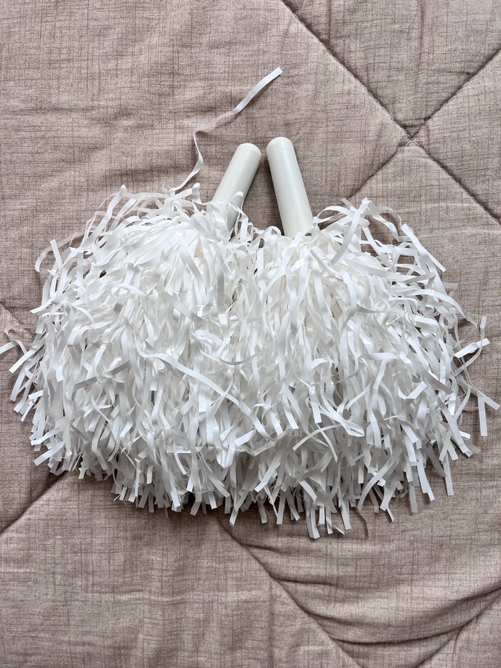 İki adet plastik saplı beyaz parti ponponu seti, kutlamalar için uygundur.