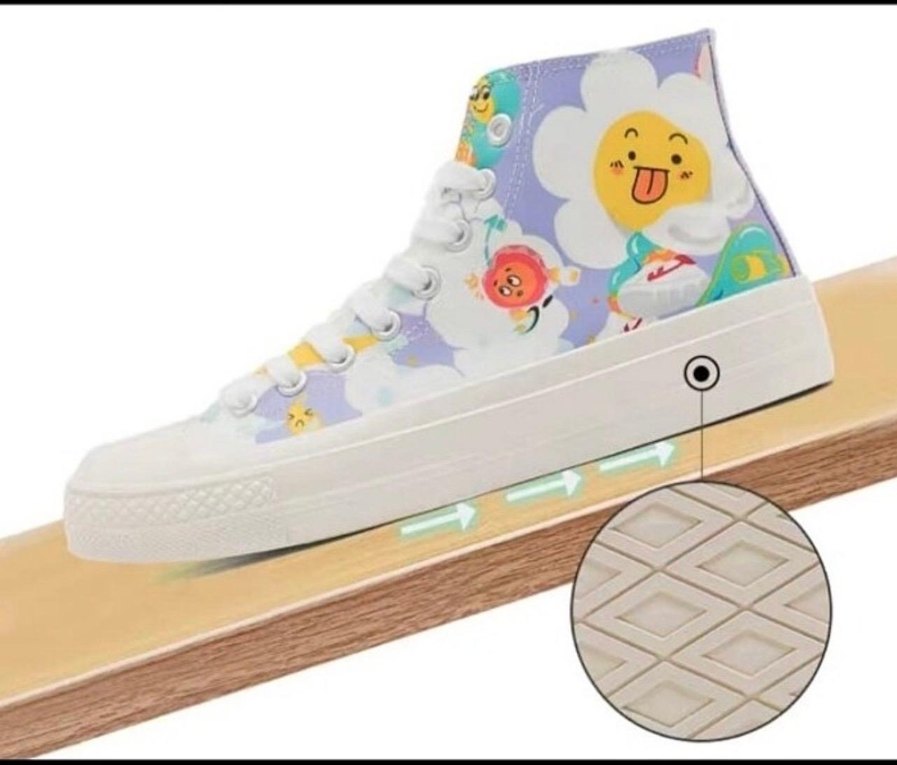 Beyaz tabanlı, pastel renklerde baskılı, elastik detaylı platform spor ayakkabıdır. Rahat ve dayanıklı kauçuk tabana sahiptir.