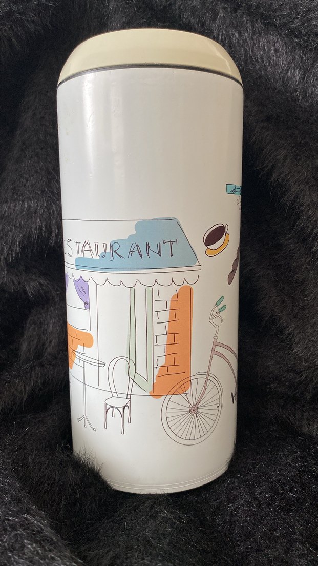 Beyaz renginde, pastel tonlarda çizimlere sahip çocuk kumbarası ürün bir kere kullanıldı deformesi kırığı çiziği yoktur baya büyüktür termos boyutunda iç haznesi baya bi geniş
