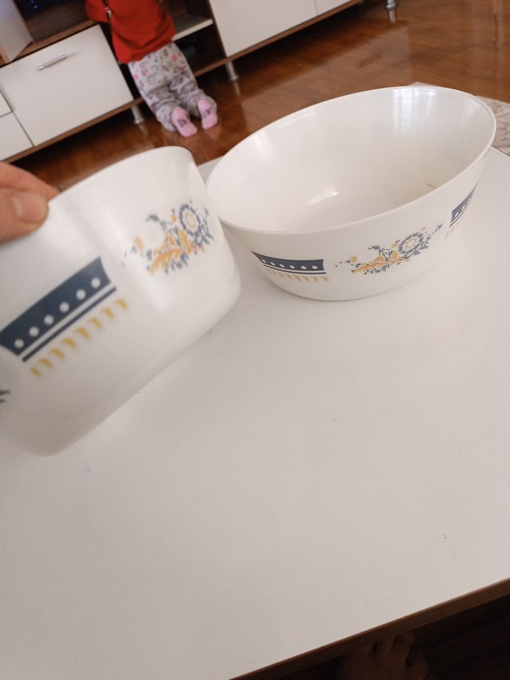 Beyaz renkli, pastel çiçek ve geometrik desenlere sahip iki adet saklama kabı. Dayanıklı ve temizlemesi kolaydır. ️ tek alım için fiyat geçerlidir