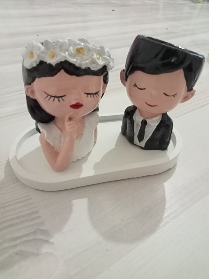 Beyaz Pastel Gelin ve Damat Biblo Seti sukulent saksi