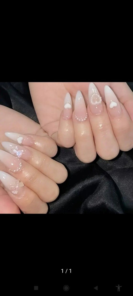 Beyaz pastel tırnak süslemeleri, kalp şekilleri ve zarif detaylarla yumuşak ve şık bir görünüm sunar.