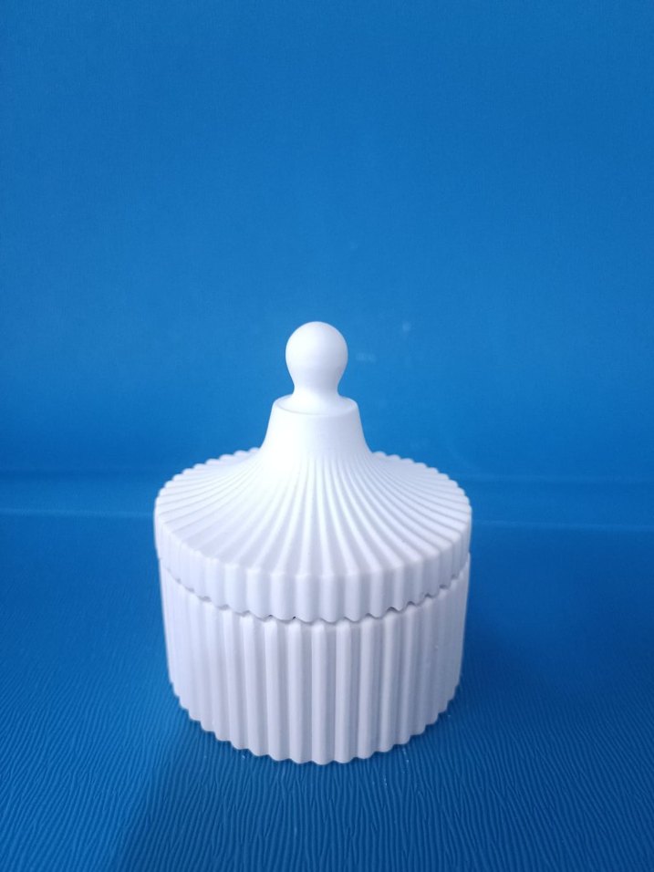 Kabartmalı tasarıma ve çıkarılabilir kapaklı beyaz pastel mumluk. Dekoratif kullanım için uygundur. ️el emegi tas tozundan uretilmistir