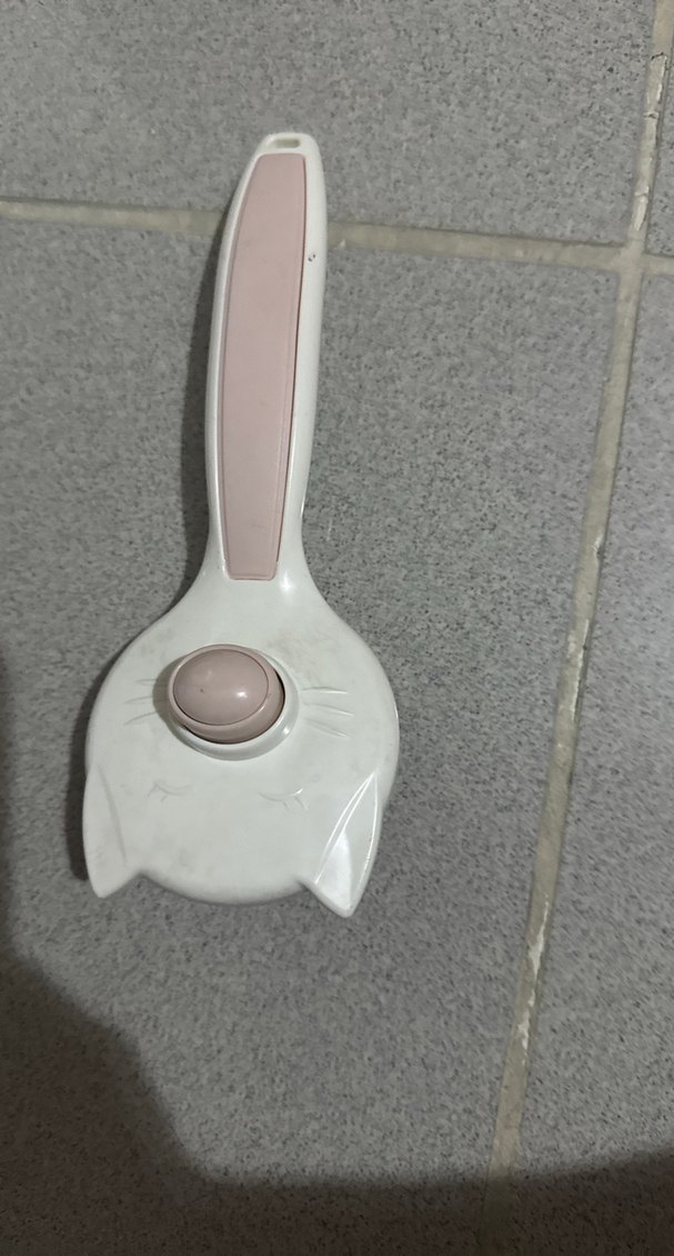 Pastel pembe saplı beyaz kedi şekilli tüy toplama fırçası, kedi bakımı için uygundur. Çoklu ürün olarak satışta
