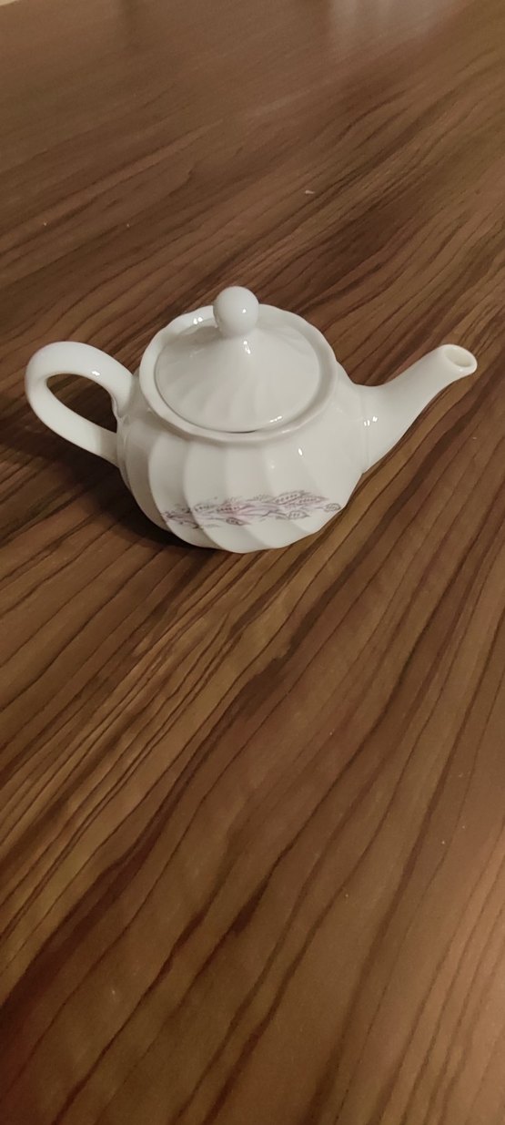 Pastel beyaz porselenden yapılmış, zarif çiçek desenli demlik. Yuvarlak kulplu ve kolay dökme için kapaklıdır.