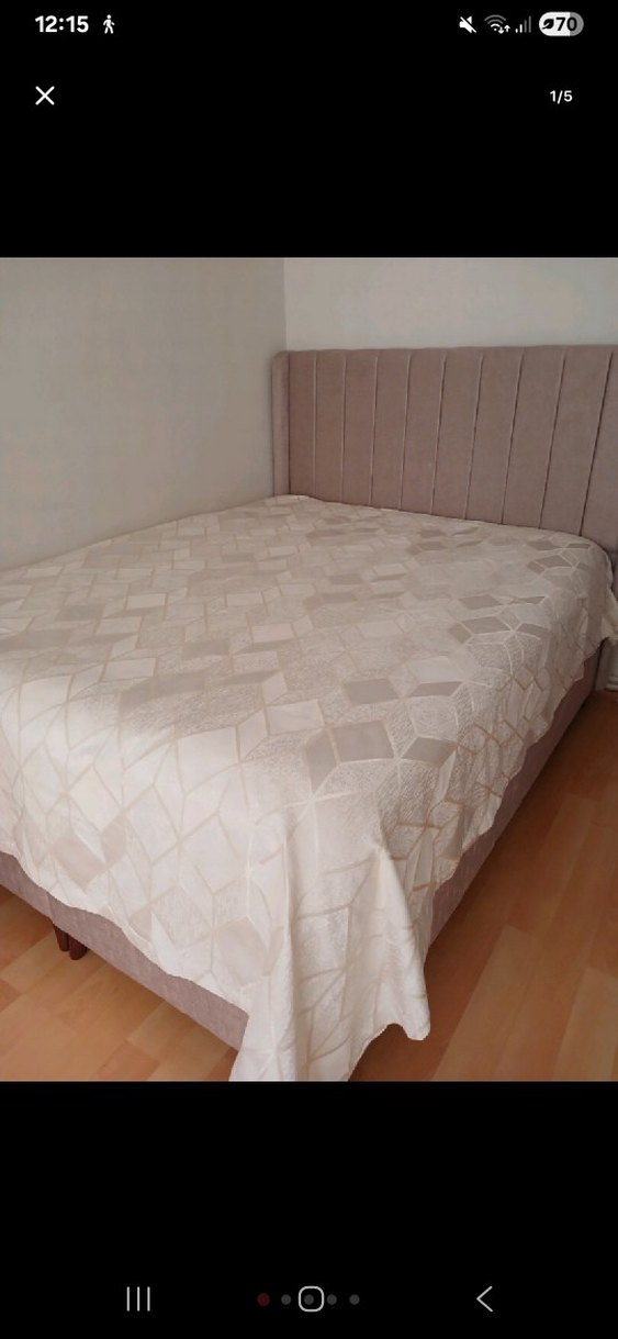 Yumuşak pastel beyaz renkte, hafif geometrik desenli yatak örtüsü, yatak odasına zarif bir dokunuş katar. ️