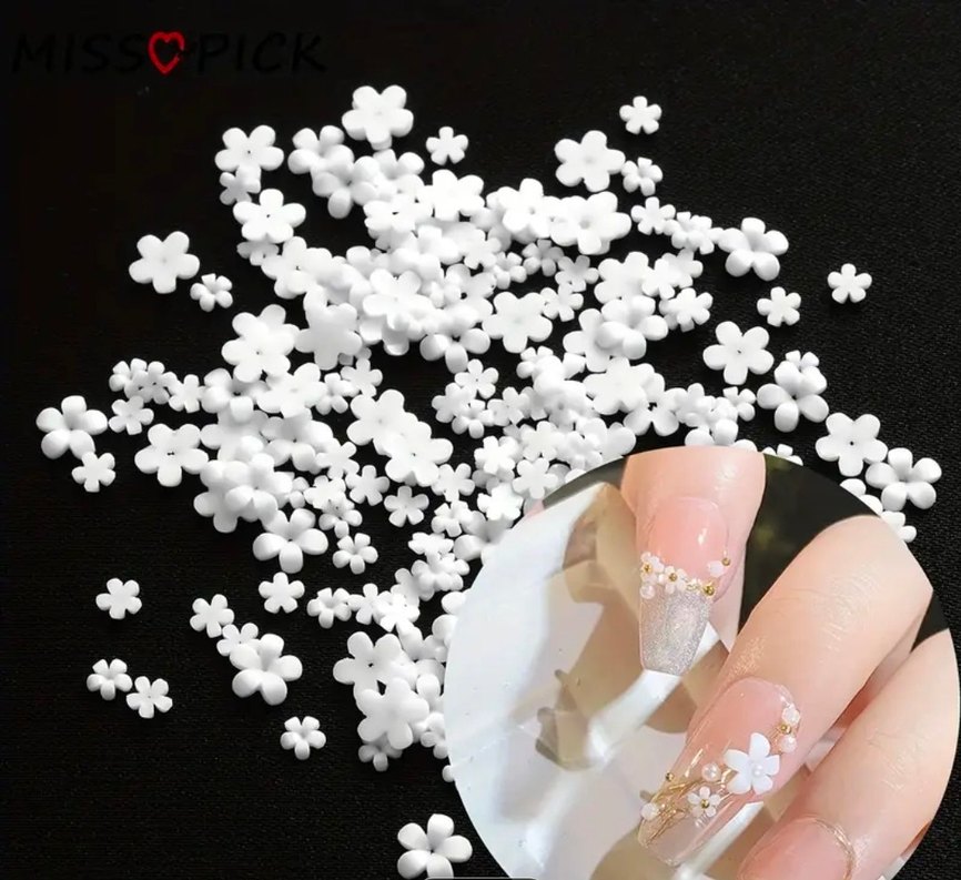 Beyaz pastel renkte, çiçek şeklinde tırnak süslemeleri. Manikürlere zarif bir dokunuş katmak için idealdir. ☀️ Icinde yaklasik 500 adet vardir. Iade yoktur.