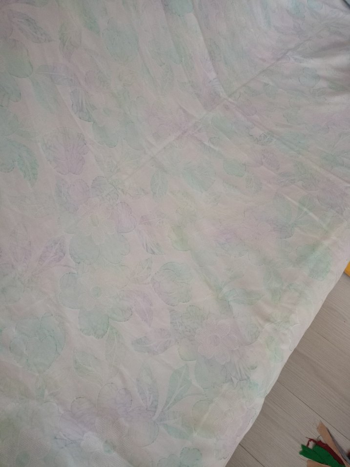 Beyaz zemin üzerinde yumuşak pastel tonlarda batik desenli,kumaş