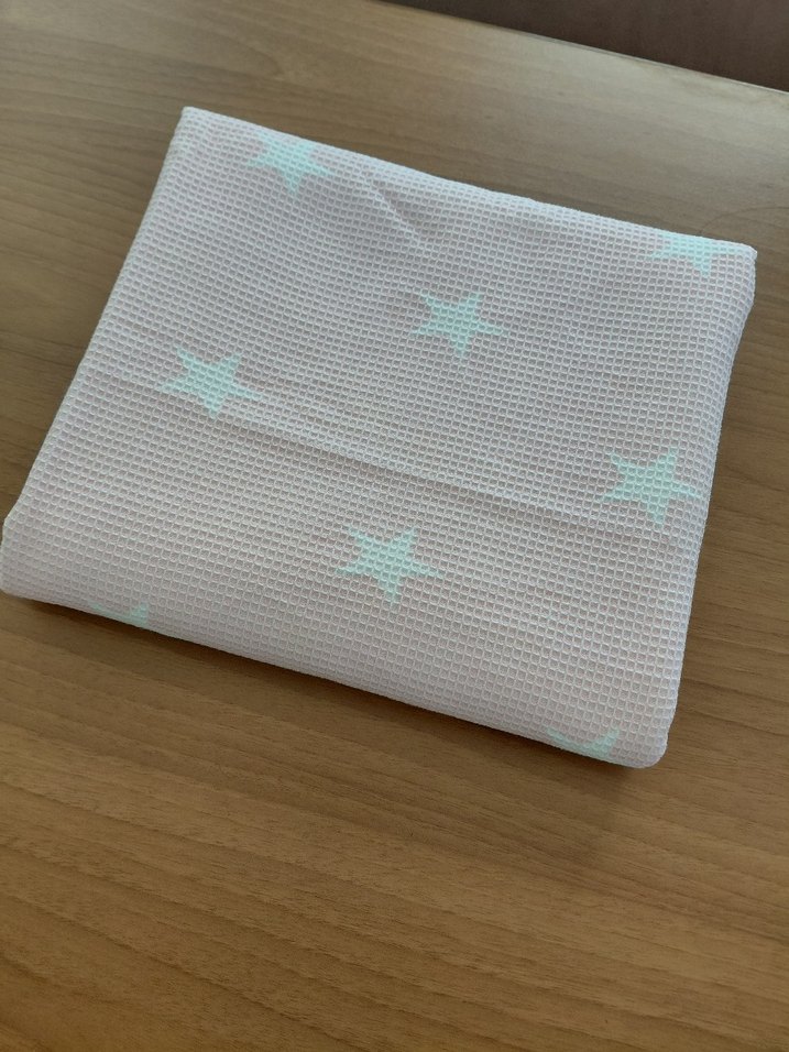 Yumuşak sentetik kumaştan yapılmış, beyaz pastel tabanlı ve baskılı yıldız deseni bulunan çocuk battaniyesi. Çocuklar için rahatlık sağlar. pike yıkandı ama kullanılmadı