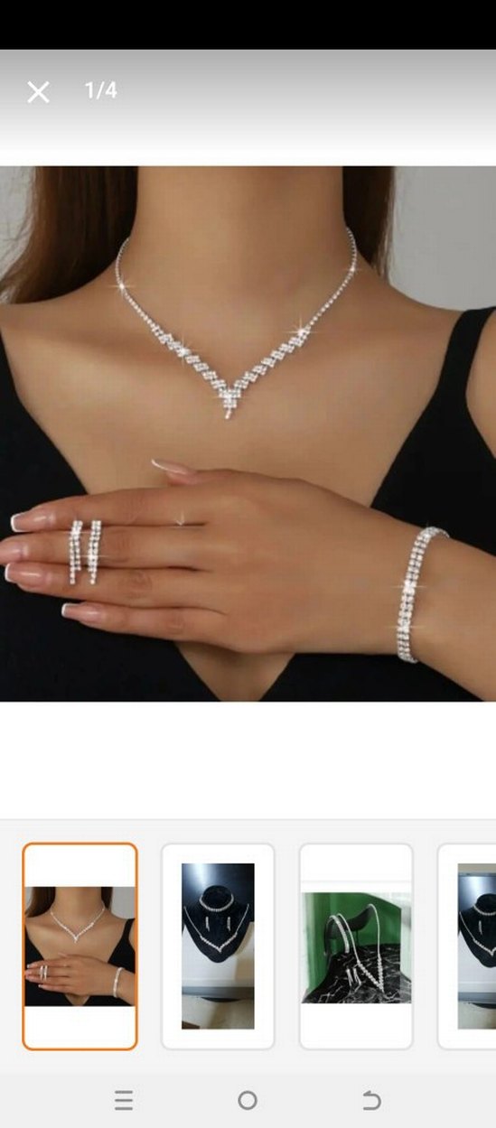 Beyaz ve payetli kolye, yüzük ve bileklik içeren modern ve zarif kadın takı seti, düğünler için uygundur. ✨