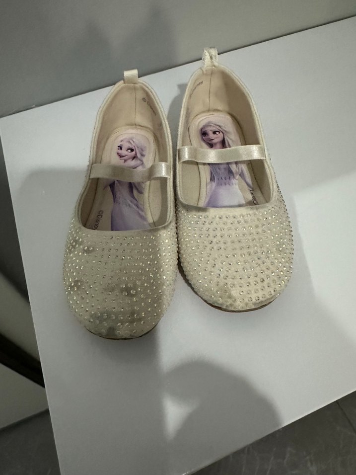Beyaz, payet işlemeli kız çocuk babet ayakkabı. Kaymaz tabanlı ve bantlı, şık sokak stili için uygun.