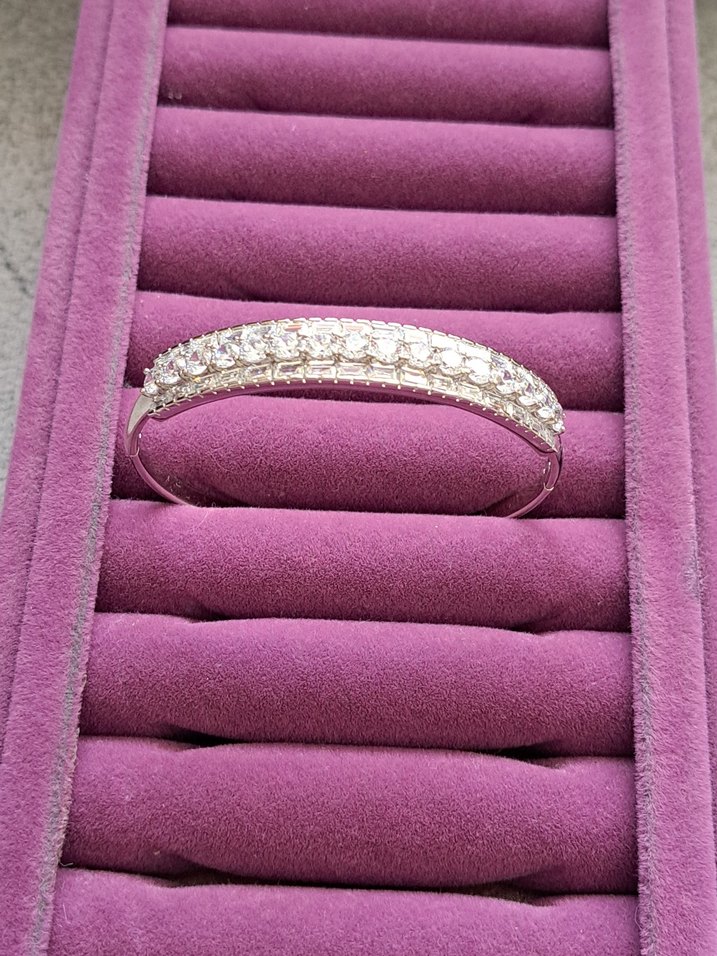 Beyaz renkli, payet detaylı bileklik, modern klasik tasarımıyla gösterişli düğünler için uygun, hafif ve zarif bir stile sahiptir.