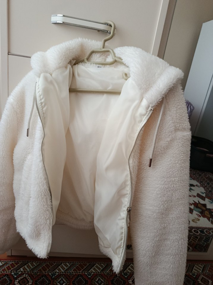 Beyaz renkte, peluş detaylı midi uzunlukta, uzun kollu kadife kumaştan yapılmış kadın ceketi. Notlu yaka detayı vardır, günlük kullanıma uygundur.