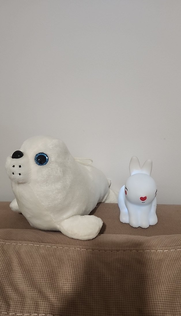 Büyük mavi gözlü, yumuşak beyaz peluş fok oyuncak. Rahatlık ve oyun için uygun dokusu var. ikisi bir fiyatidir