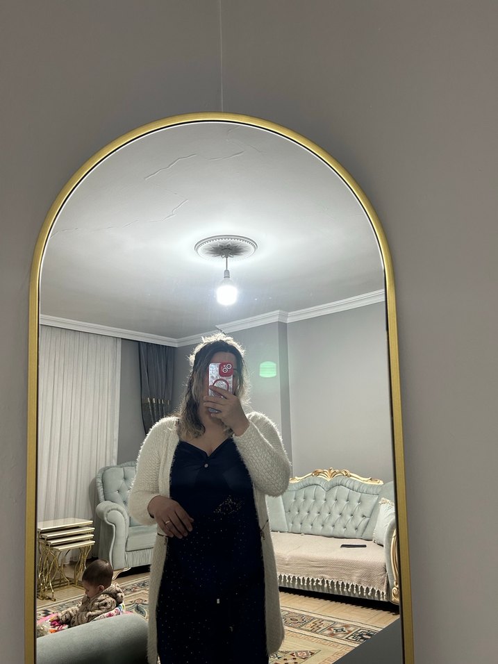 Beyaz peluş hırka zinciri sayesinde hem uzatılabilir hem kısa tercih edilebiliyor  bir çok kombininize uyum sağlar  iki farklı şekilde kullanılabiliyor S & M beden  için uygundur Ürün yurt dışı malı ve hiç giyinmemiştir  ama etiketi yoktur